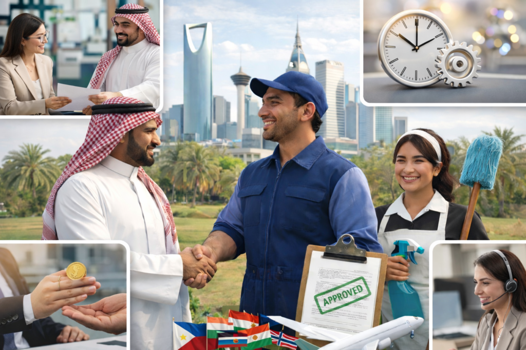 نقدّم خدمات استقدام موثوقة وسريعة، مع كوادر مدرَّبة ومختارة بعناية لتلبية احتياجاتكم، وإجراءات ميسّرة تضمن لكم الجودة والراحة والثقة في كل خطوة.
